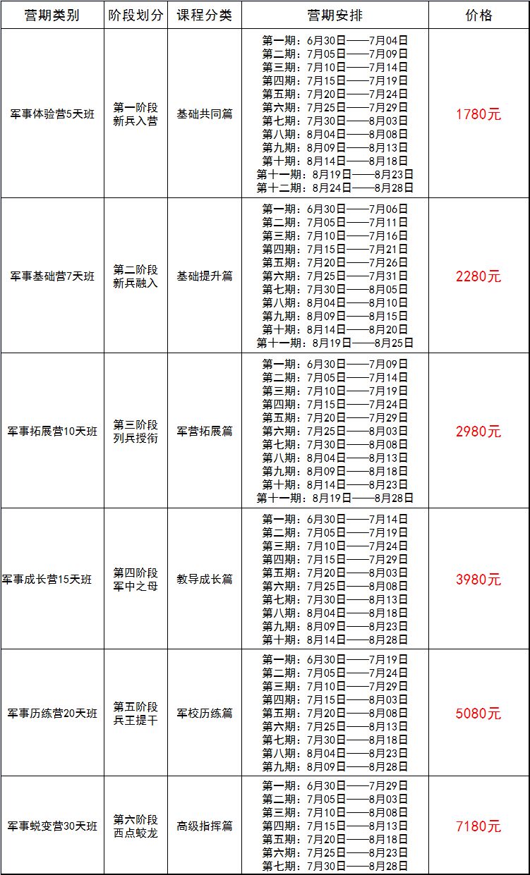 保险:为每一名学员及教官投保20万元的人身意外伤害险和5万元的医疗保险。