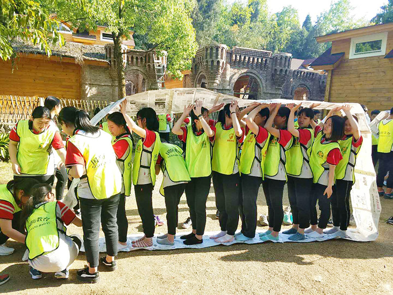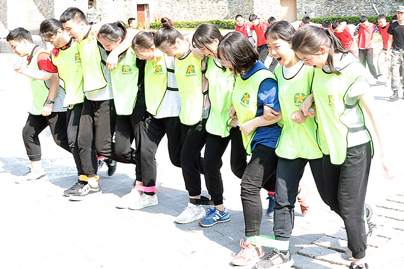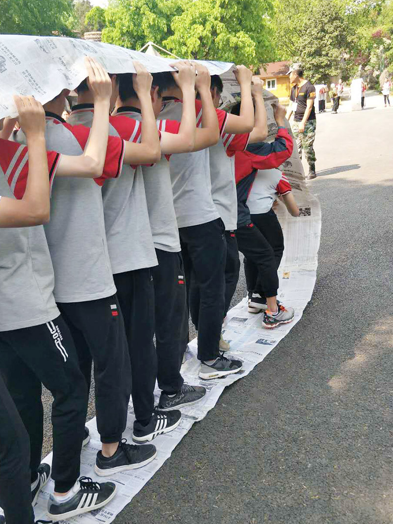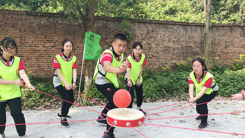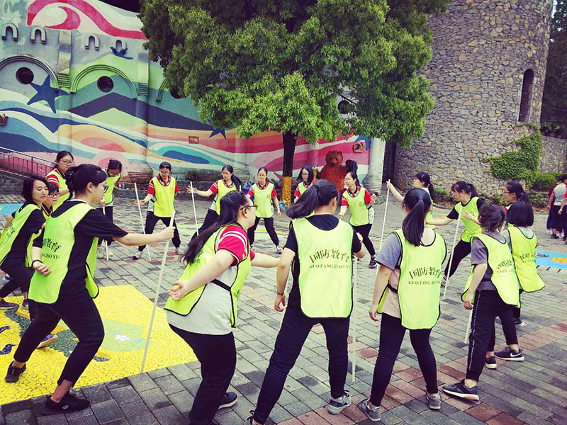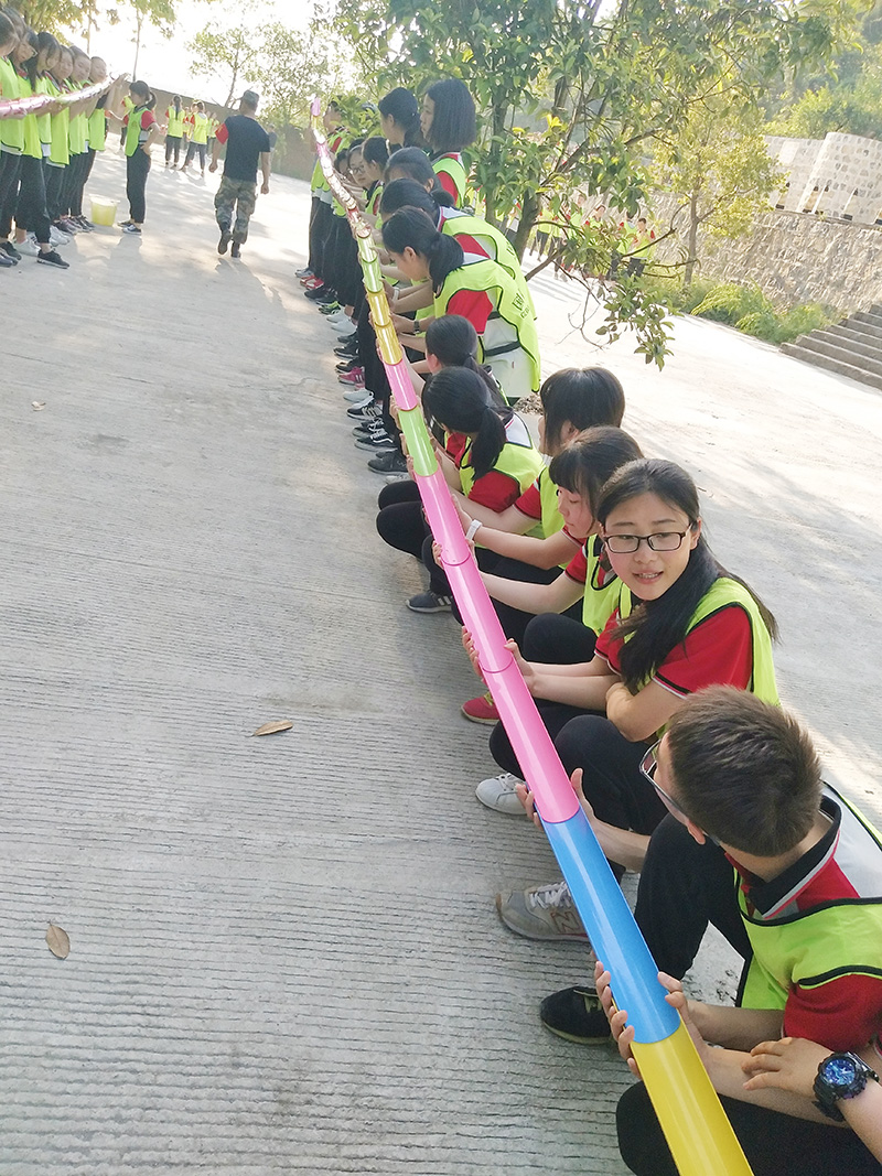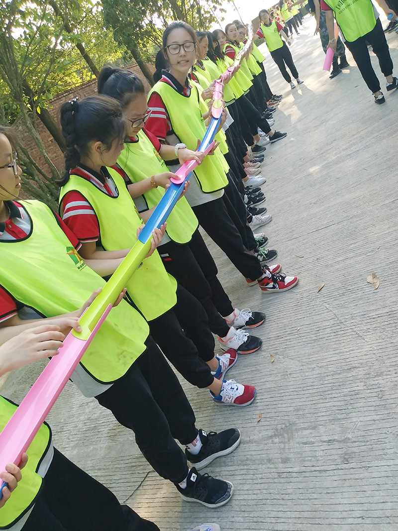 在团队整体旋转移动中,要想立棍不倒,这需要伙伴们集中注意力、保持平常心,在一定的节奏控制下,实现团队熔炼。