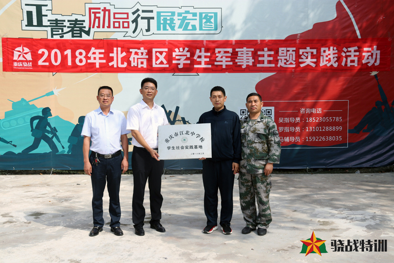 最后,但校长,刘副校长代表重庆市江北中学,亲自将“重庆市江北中学校学生社会实践基地”牌匾授予重庆骁战中小学生社会实践综合基地。