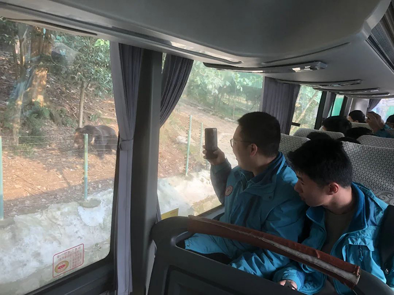 在野生动物世界车行区,孩子们就像穿越在原始的非洲草原上,看到了狼、熊、狮、虎等猛兽。如此近距离的接触这些掠食者们,使得同学们特别兴奋。