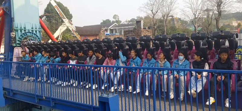 在欢乐世界里,同学们可以乘坐各种游乐设备,十环过山车、辛巴达奇航、果虫滑车、无敌旋风塔、飓风飞骑、金刚、花篮式观览车、救火车、豪华双层转马等。