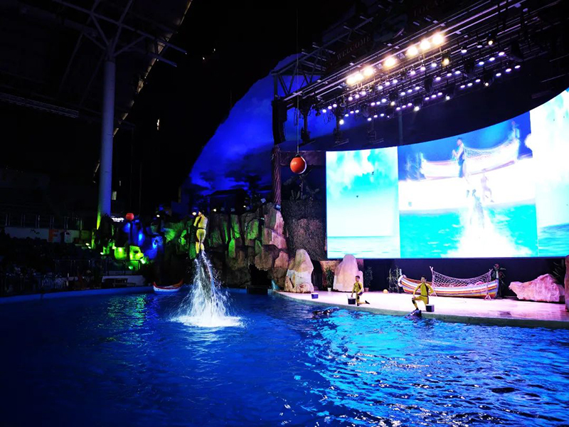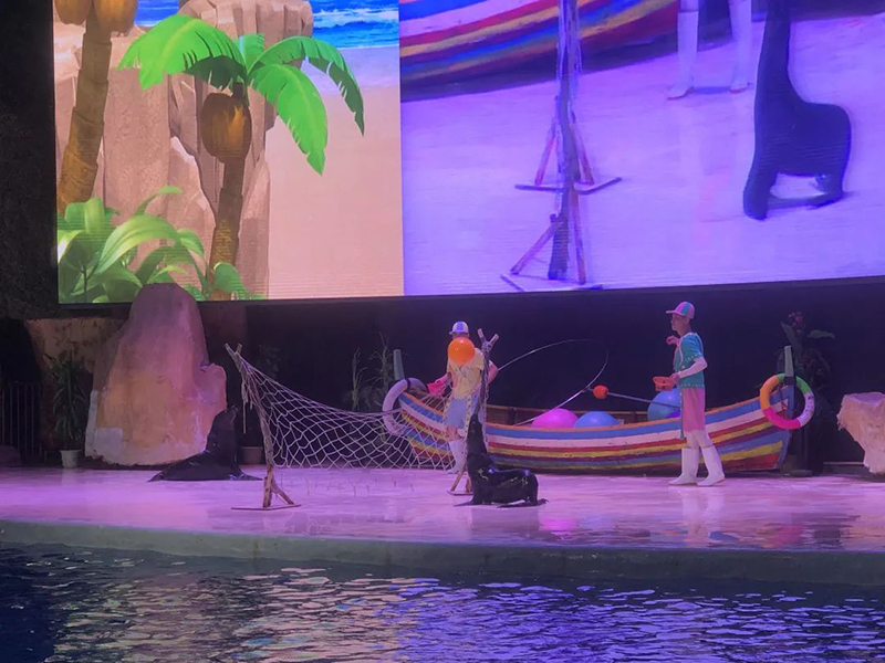 在这里,同学们看到了由动物们领衔出演的节目——海豚联盟,可爱的海豚、海狮、黑熊...跟海盗斗智斗勇,演绎了一场惊险刺激又诙谐幽默的动物守卫家园战。