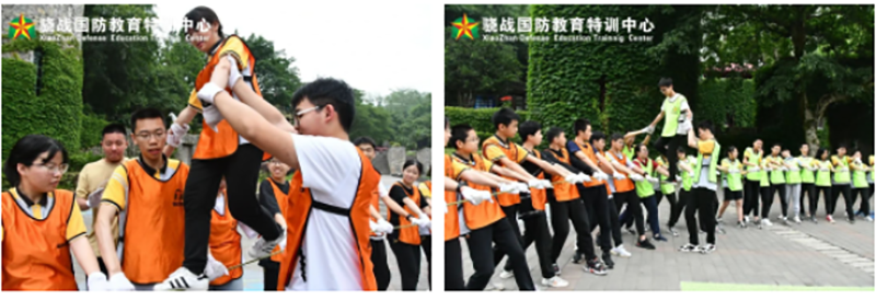 动力绳圈,让同学们亲身体验众人划桨开大船的豪气,一群人,一根绳,把所有人联系在一起,双手握住绳便是团队一员,如果失去动力绳这个焦点,便是一盘散沙,无法凝聚力量。