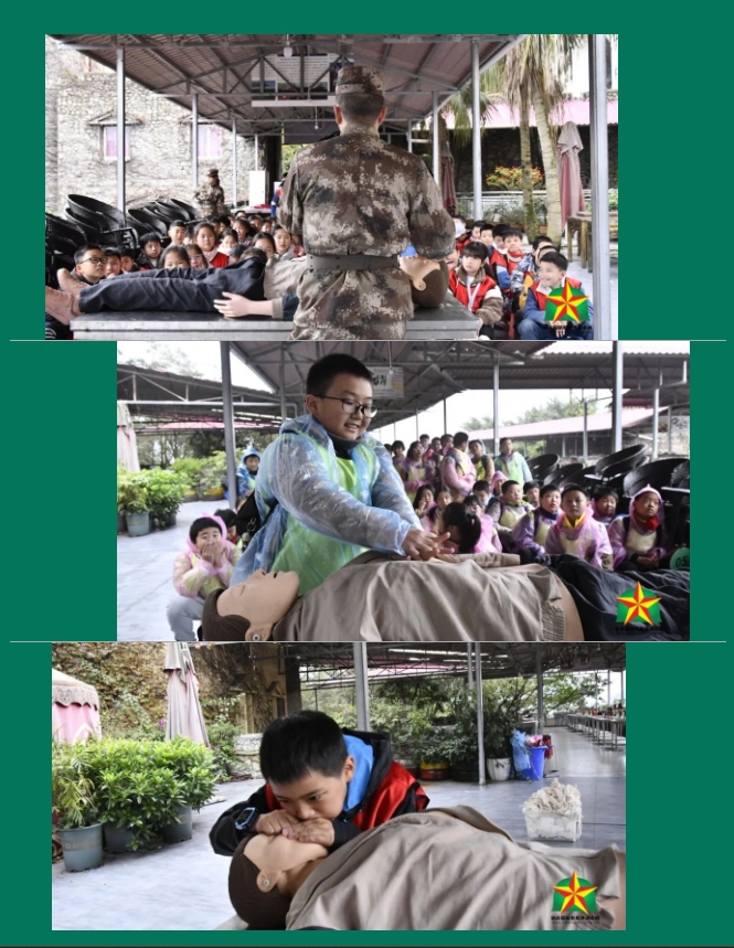 骁战教官采取“理论+实操”的教学方式,用通俗易懂的语言为华岩学子们讲解心肺复苏、创伤包扎操作方法,并让同学们上台练习,对照模拟人进行急救,从而有效地提高了同学们的急救技能知识。