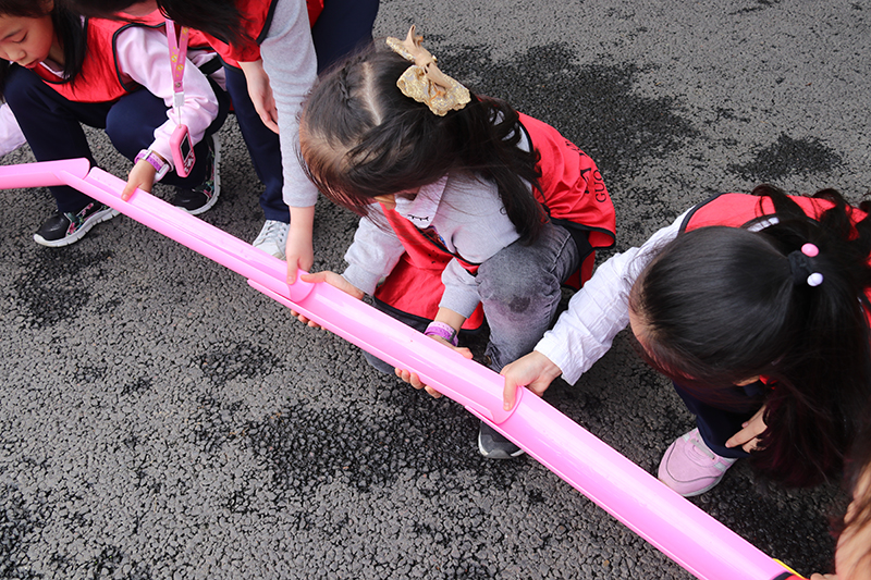 看我们合力搭的“河道”,是不是很对称