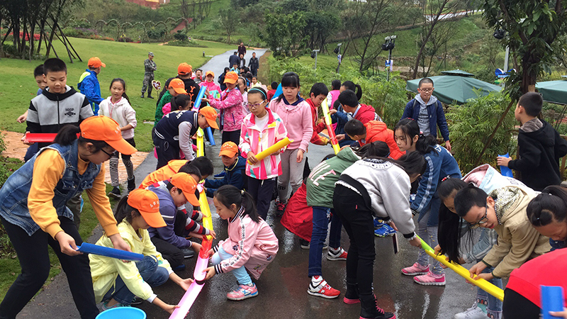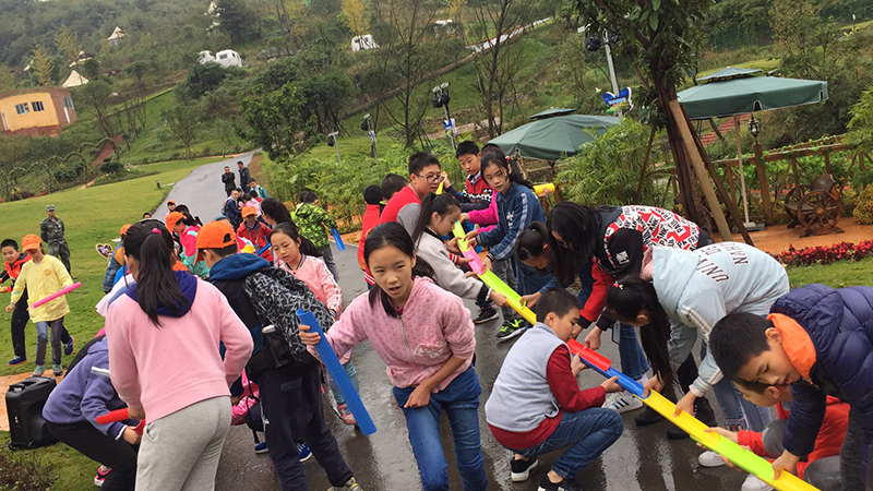 在重庆骁战中小学生社会实践综合基地,孩子们愉快地玩耍着: