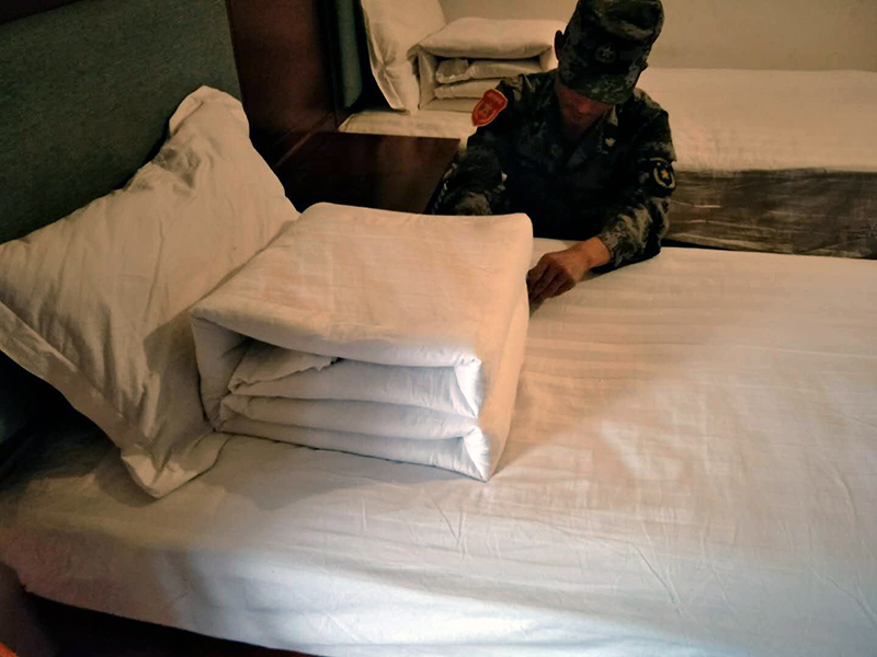 每天早操和午休后的内务秩序规整,是这群年轻的海润姑娘小伙们的必修之课。通过折叠被子,打扫卫生,按照统一要求设置室内物品摆放,做到干净整洁,条块分明,秩序井然,进而达到培养良好习惯、修炼定力心性之目的。