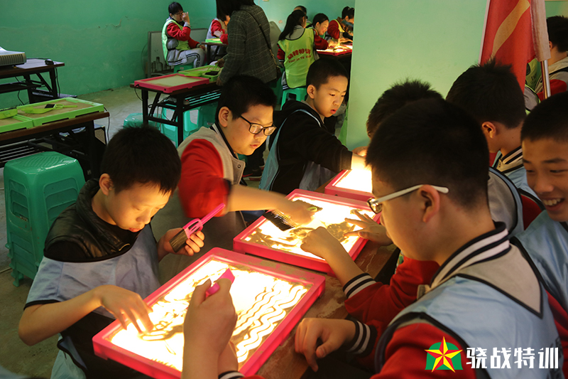 沙画,是一项民间艺术,在这个平台上,同学们尽情描绘他们未来的美好。有目标,有思想,有行动,有考验。在学与思,学与行之间,他们把最好的灵感、最美妙的想法展现在沙画中。